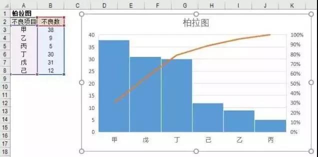 ③柏拉圖的分類項目不要定得太少,5~9項教合適,如果分類項目太多,超過9項,可劃入其它,如果分類項目太少,少于4項,做柏拉圖無實際意義;