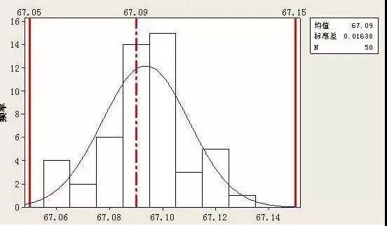 ④把上述所取數據作立方圖,將立方圖和標準界限(公差上限和下限)相比較,看是否在理想狀態和較理想狀態,如果達不到要求,就必須采取措施,使平均位移動或標準偏差減少,采取措施以后再重復上述步驟重新取數據,做控制界限,直到滿足標準為止。